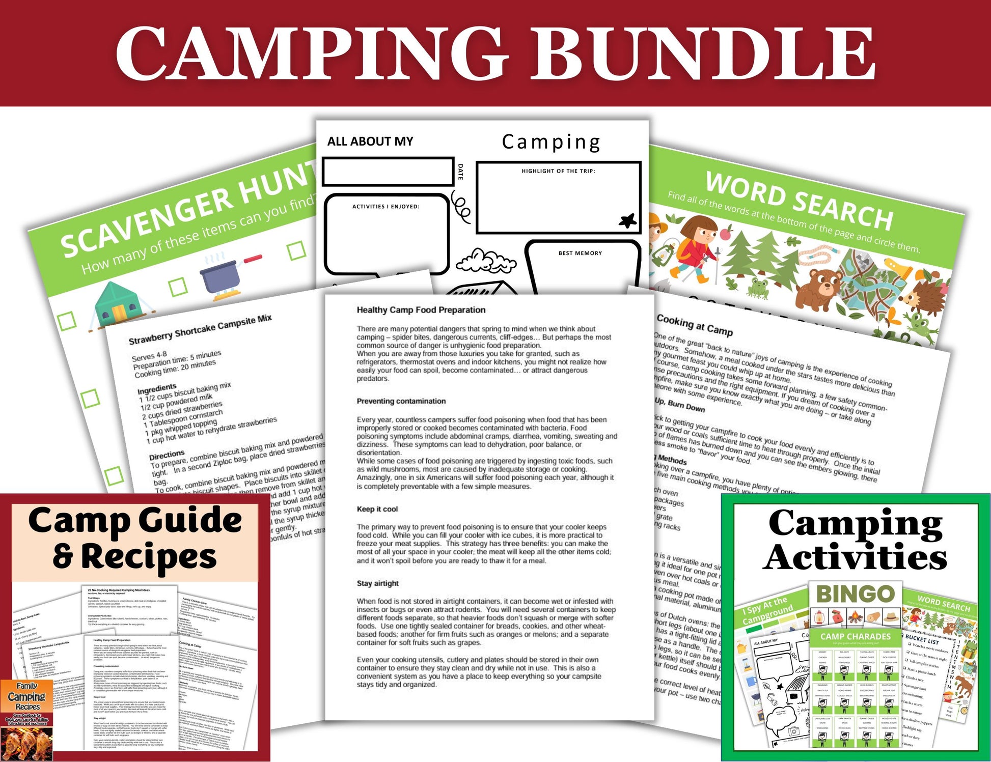 2-in-1 Camping Bundle – Camping Activities Printable Pack + Camping Guide & Recipe Book (Digital Download)
