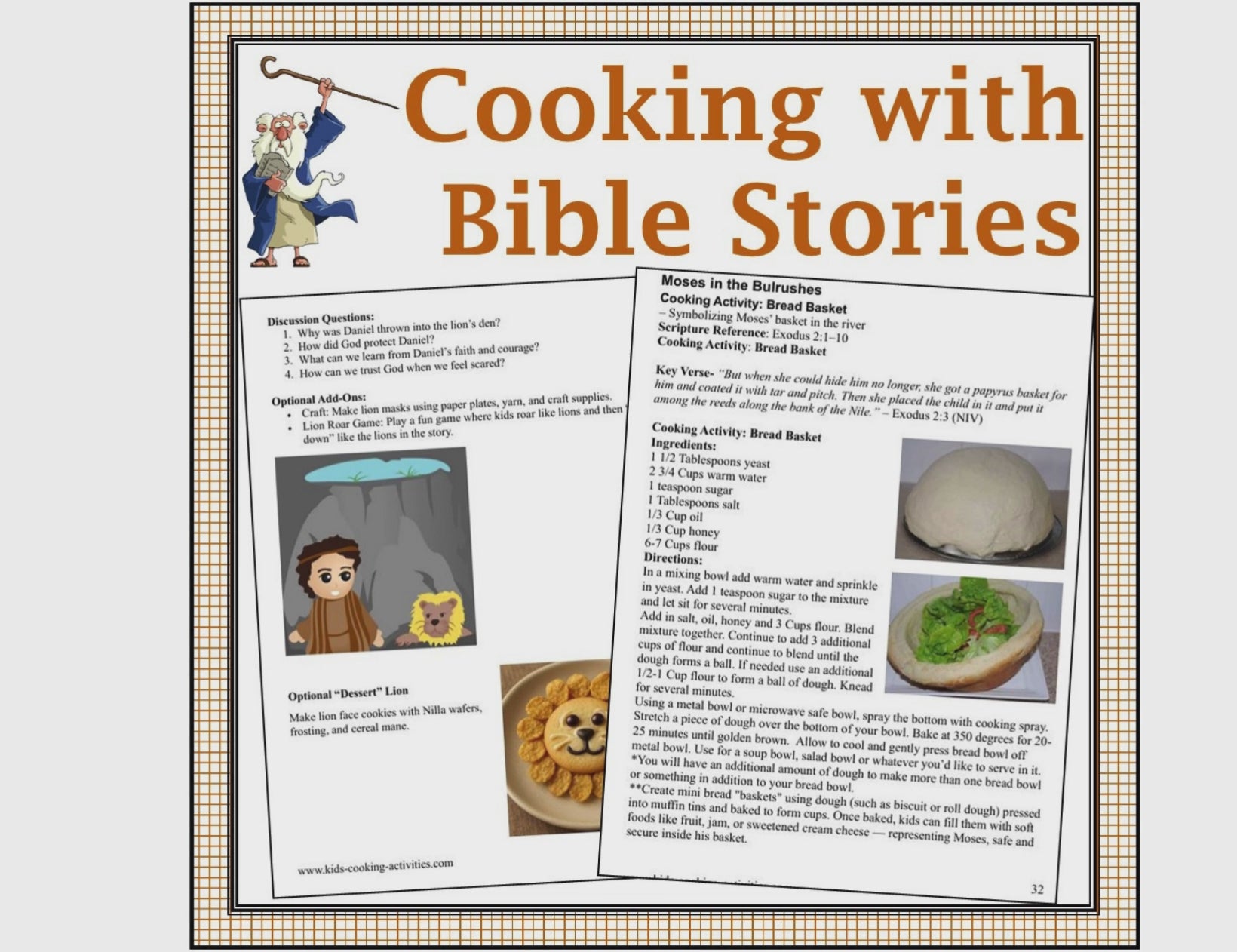 • 15 Bible-themed cooking activities – Each recipe pairs with a Bible story for a meaningful hands-on experience