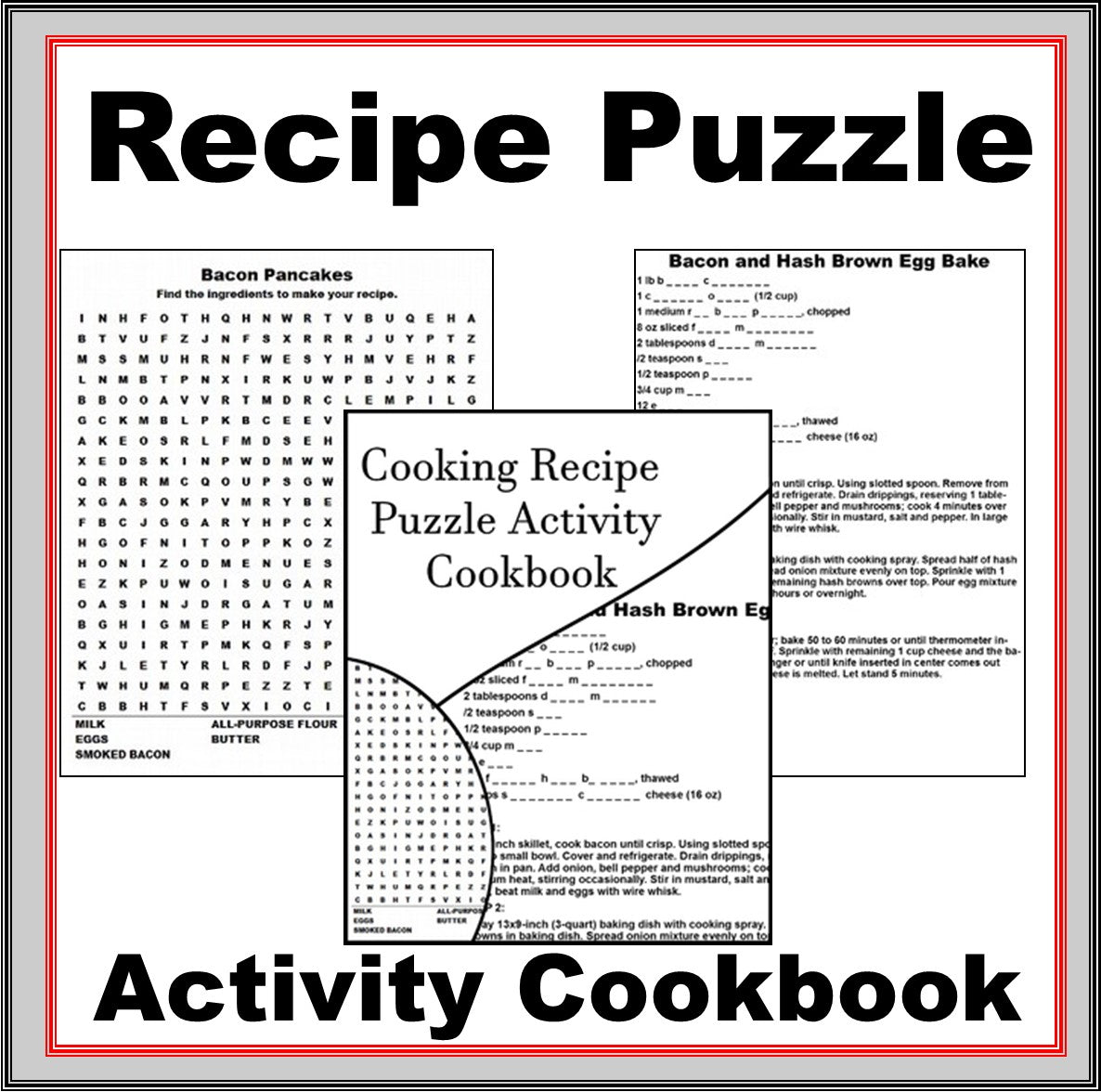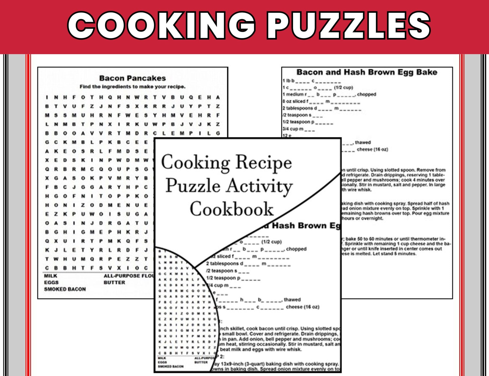 Make cooking lessons more engaging with this unique Recipe Puzzle Activity Cookbook! Featuring 50 interactive puzzles, this resource combines word searches and fill-in-the-blank recipes to reinforce ingredient recognition and recipe comprehension—perfect for cooking classes, homeschoolers, or food-themed educational fun.