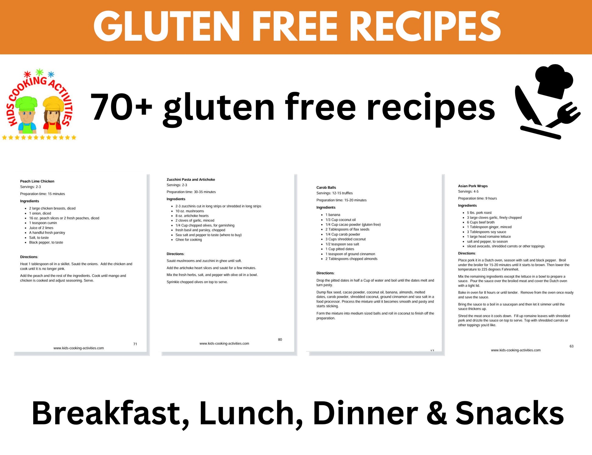 - ✅ 70+ Gluten-Free Recipes: Enjoy a variety of wholesome and kid-approved meals for breakfast, lunch, dinner, and snacks.