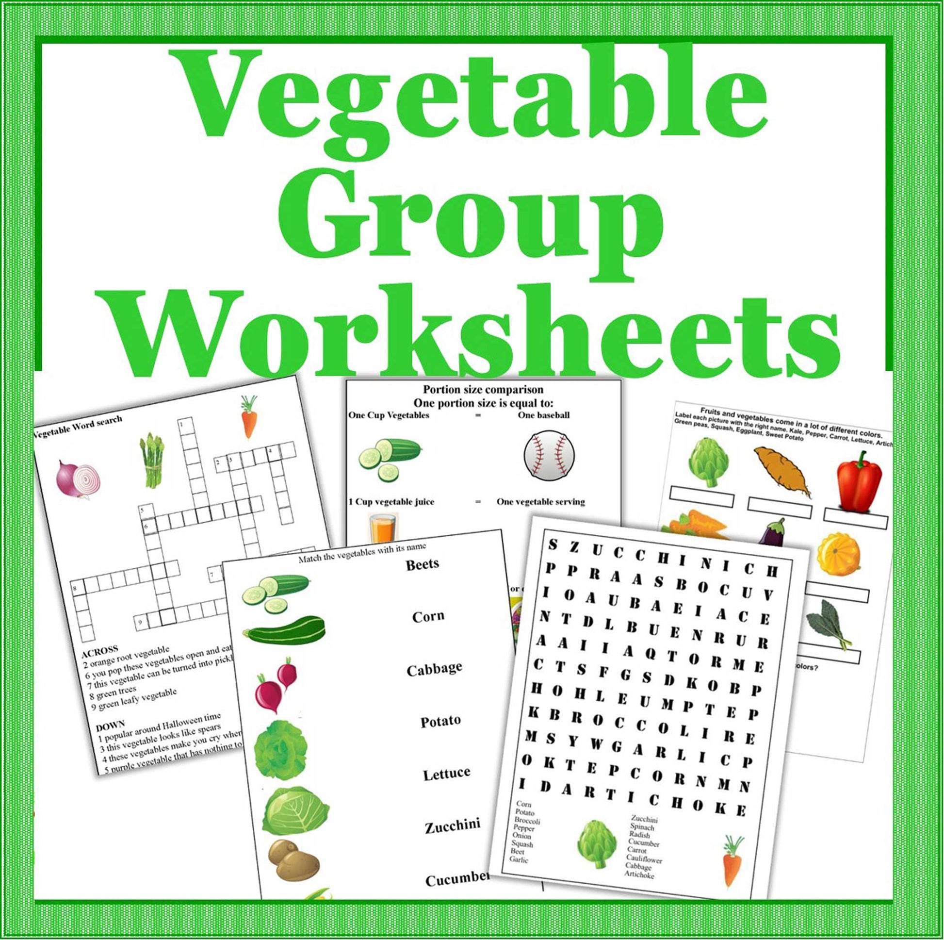 - Vegetable Group-Similar structure to the fruit set with a focus on vegetable identification, nutrition, and fun worksheets