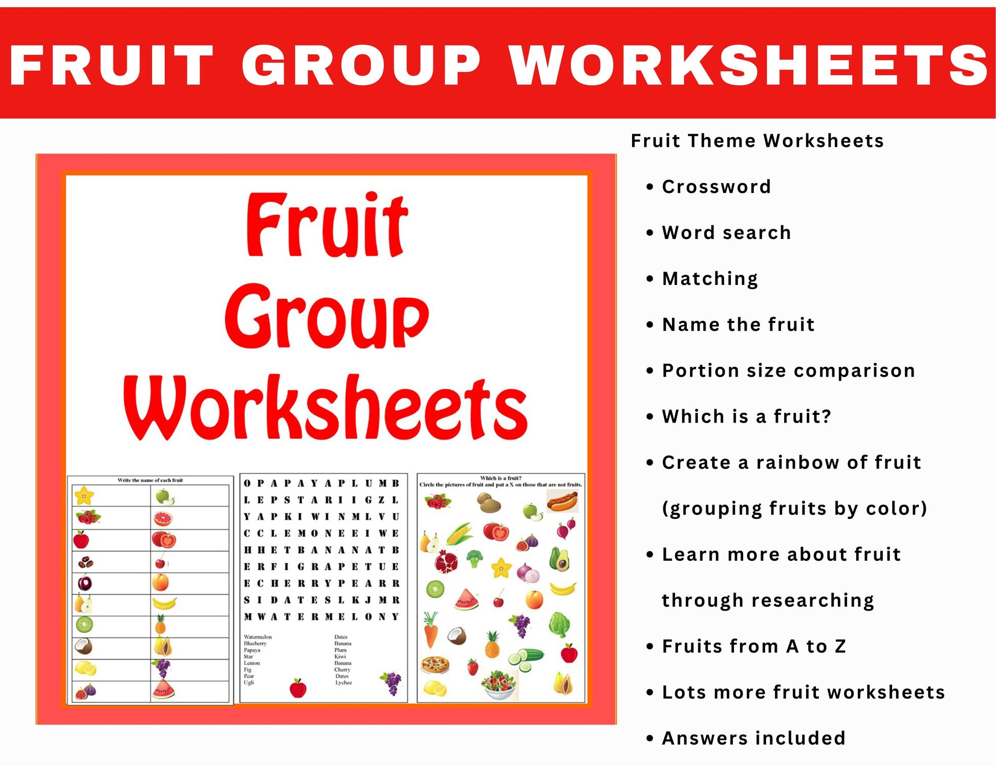 Fruit Group Worksheets- Fun & Educational Healthy Eating Printables-Digital Download