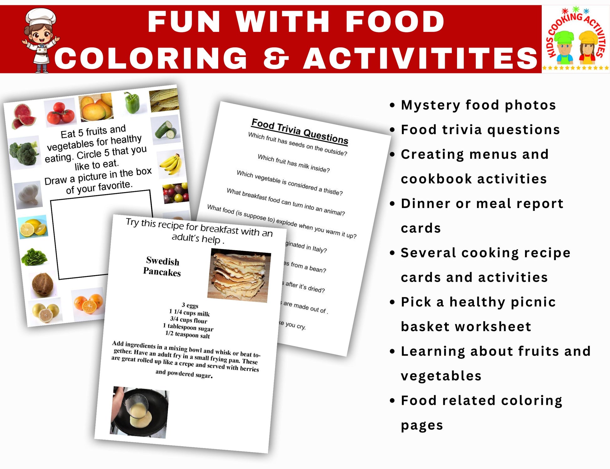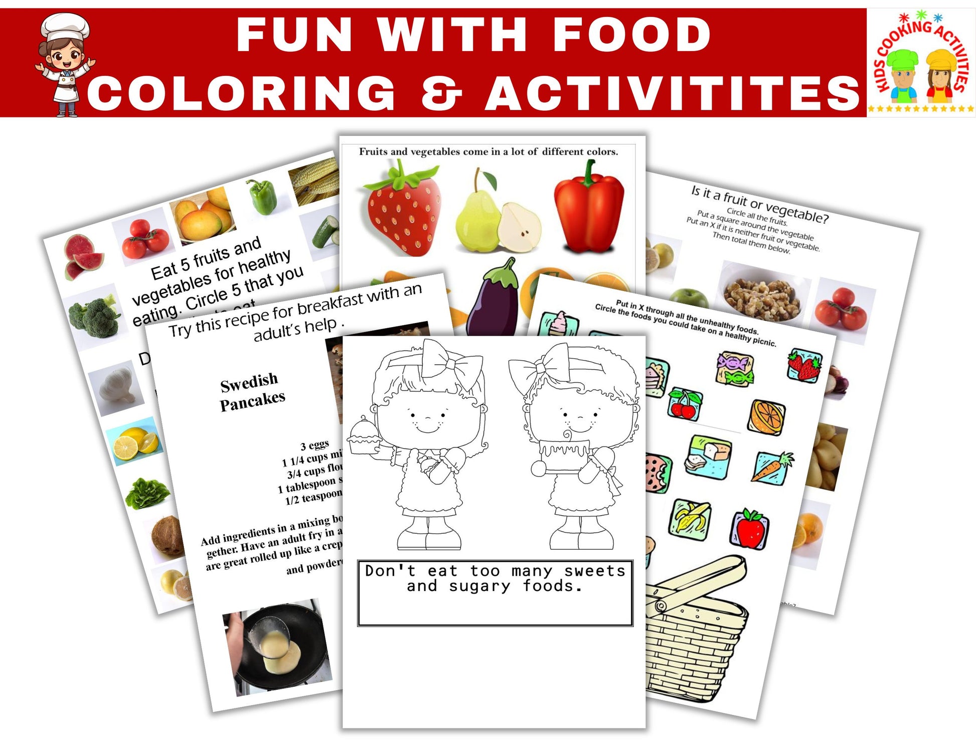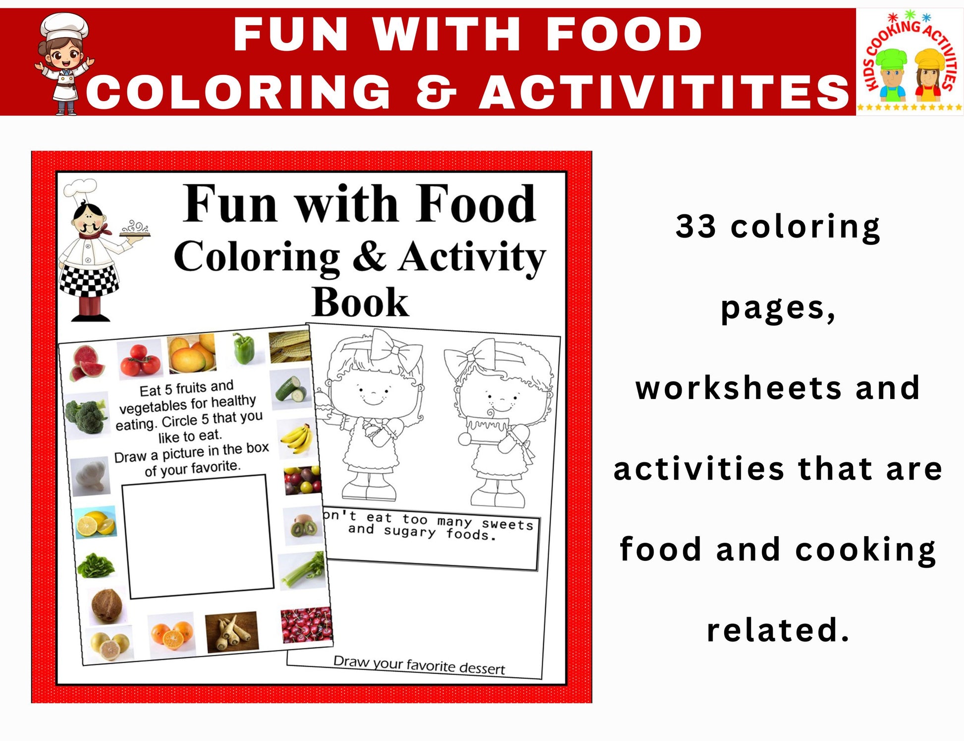 Fun with Food Coloring & Activity Book – Cooking-Themed Printables for Kids (Digital Download)