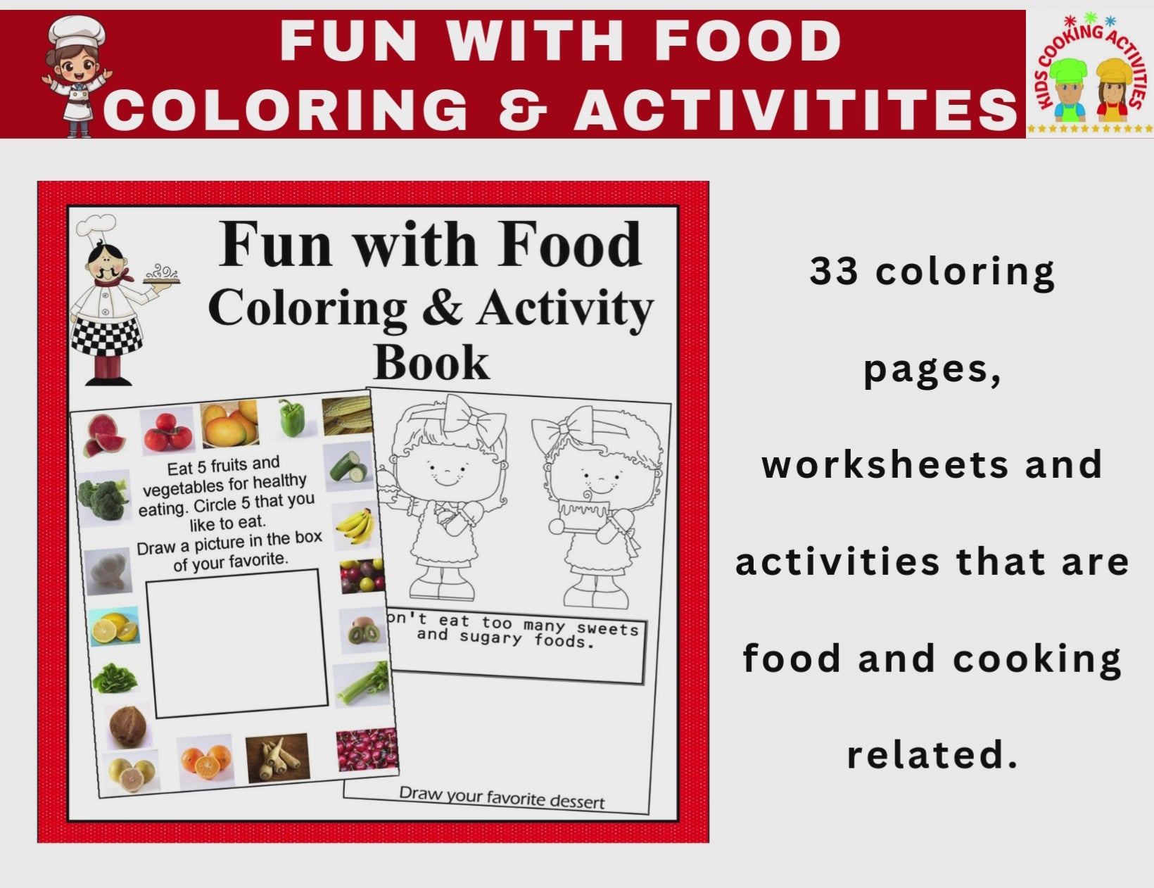 Add excitement to your cooking and nutrition lessons with the Fun with Food Coloring Activity Book! This engaging 33-page resource is packed with coloring pages, worksheets, and hands-on activities all centered around food, cooking, and healthy eating. Perfect for classrooms, homeschoolers, or kids who love food-themed fun, this activity book makes learning about food both creative and educational.
