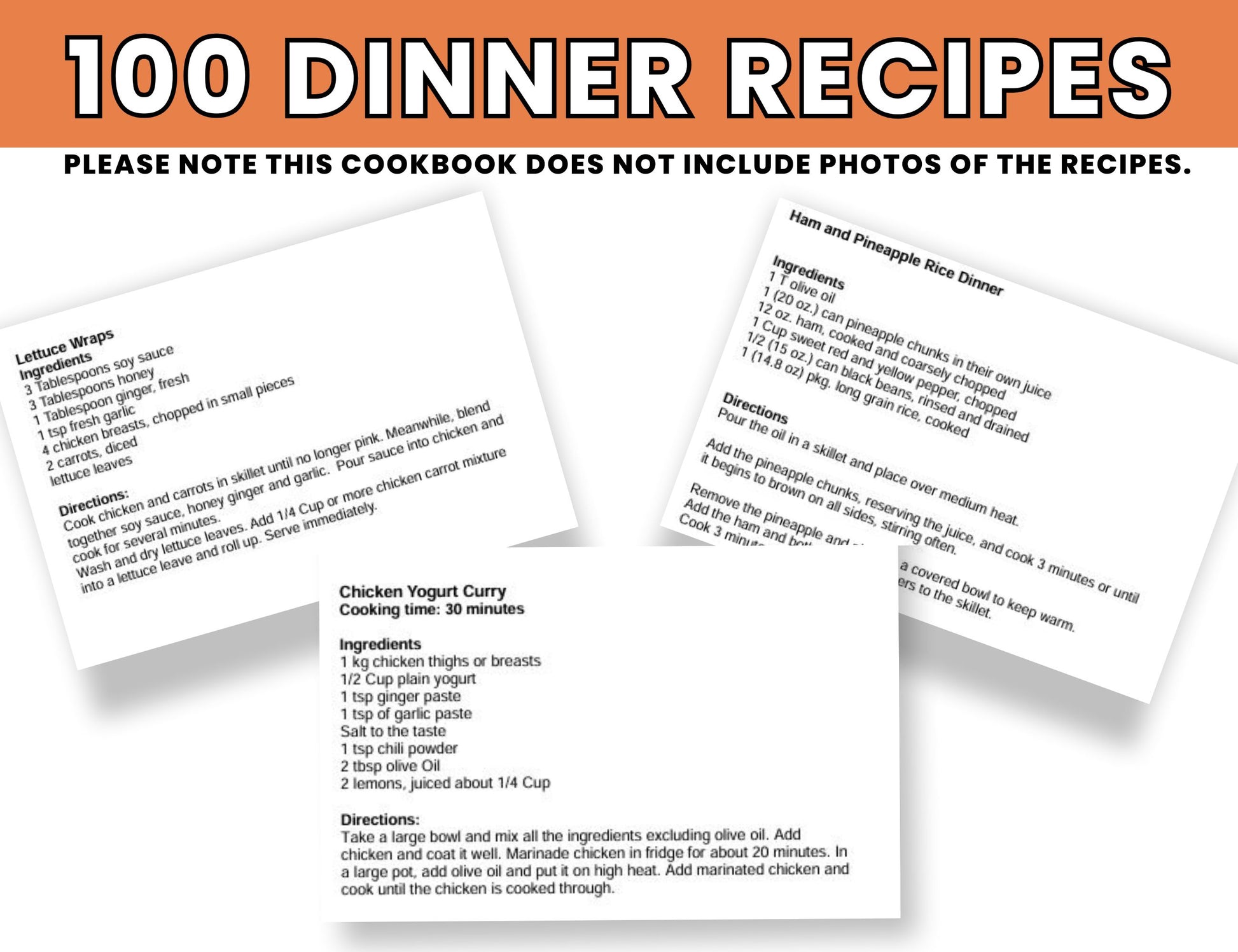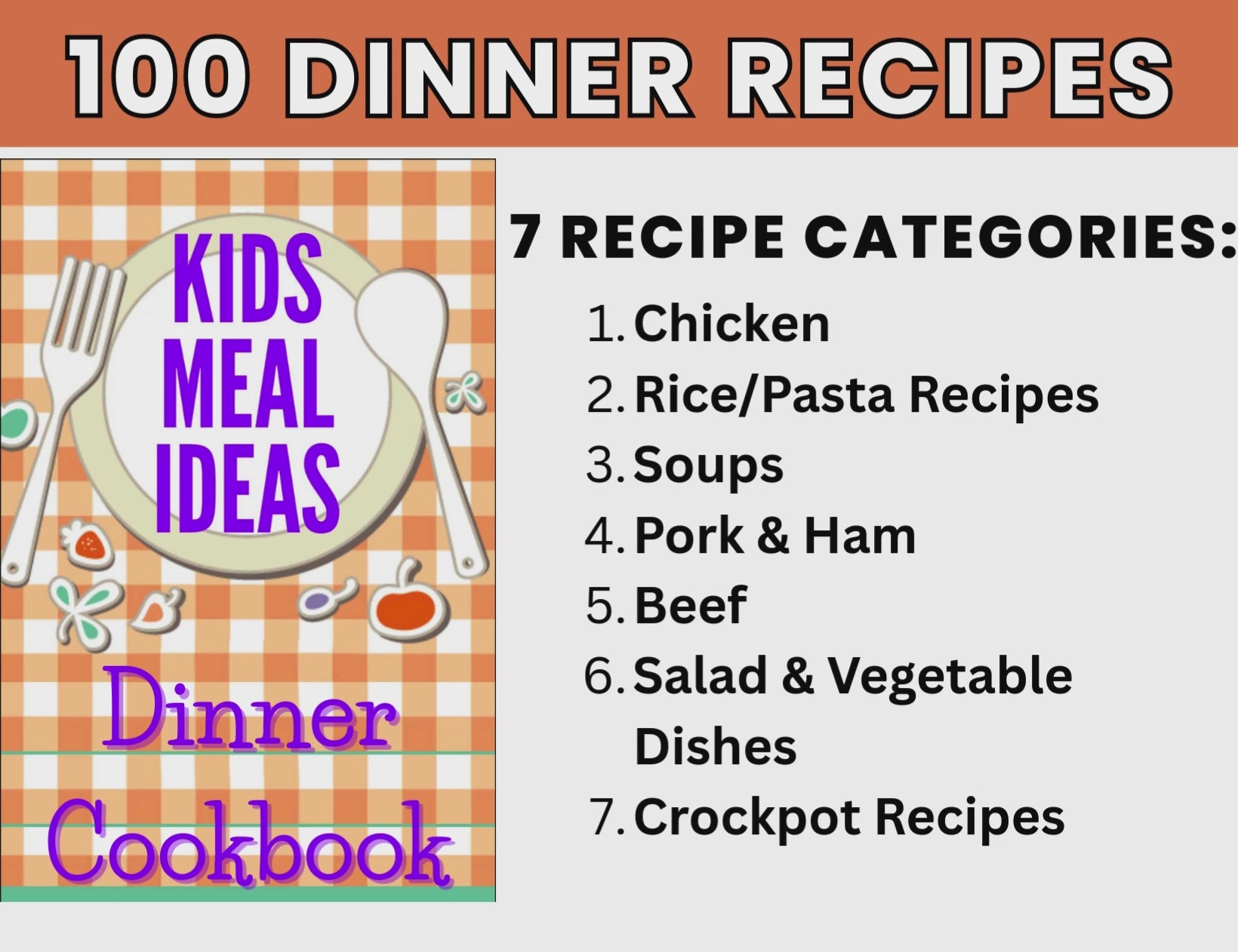 Kids Dinner Cookbook – 100 Easy and Delicious Dinner Recipes-Digital Download
