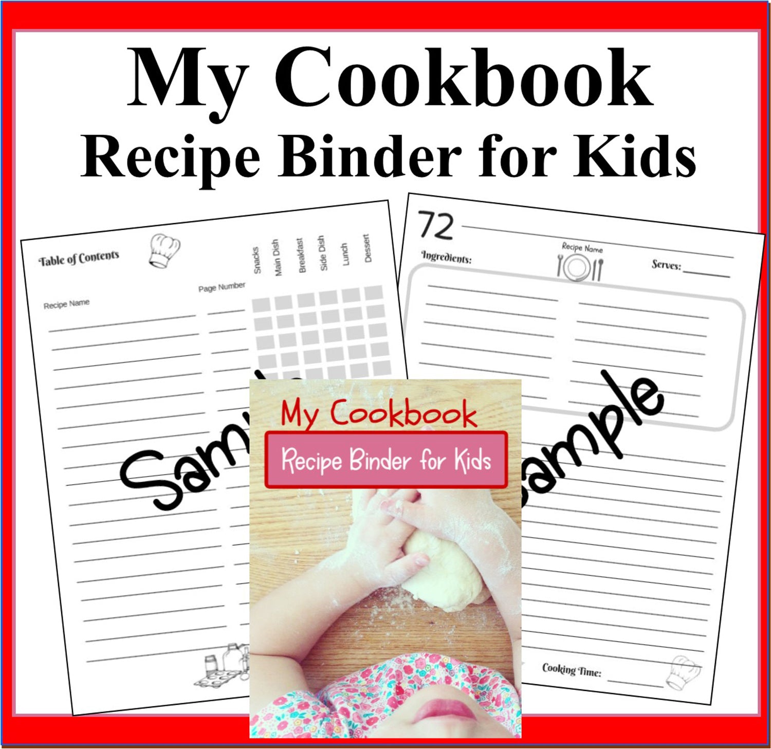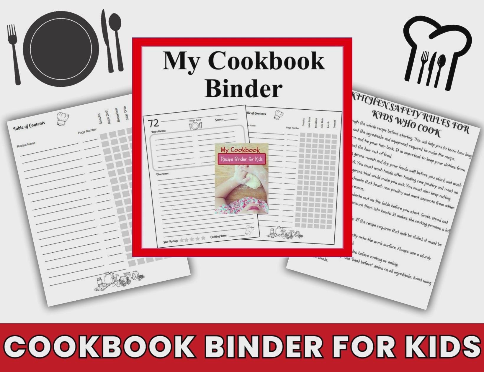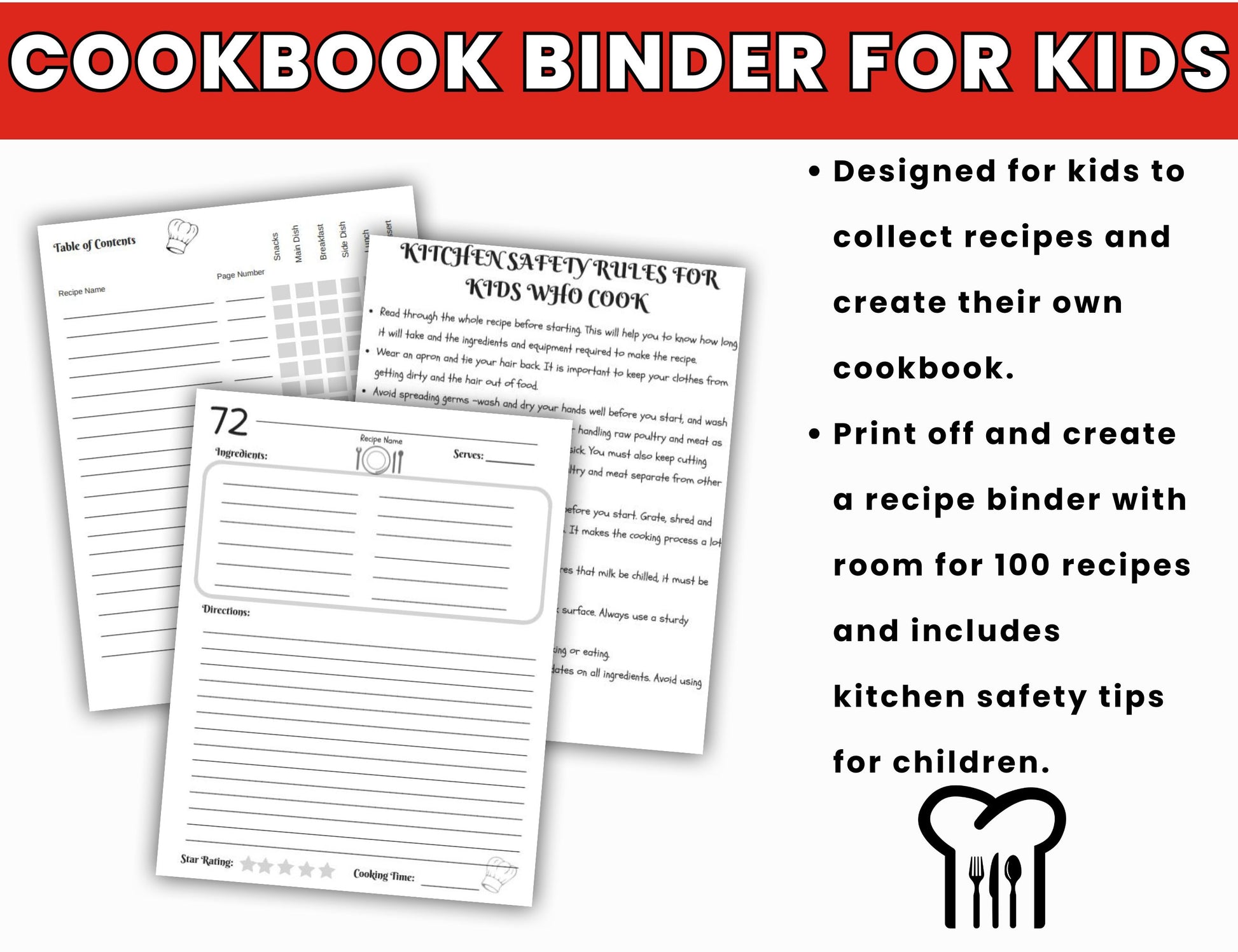 My Cookbook Recipe Binder for Kids- Collect 100 Recipes Plus Kitchen Safety Tips for Children-Recipe Journal to Write In 100 Recipes-Digital Download