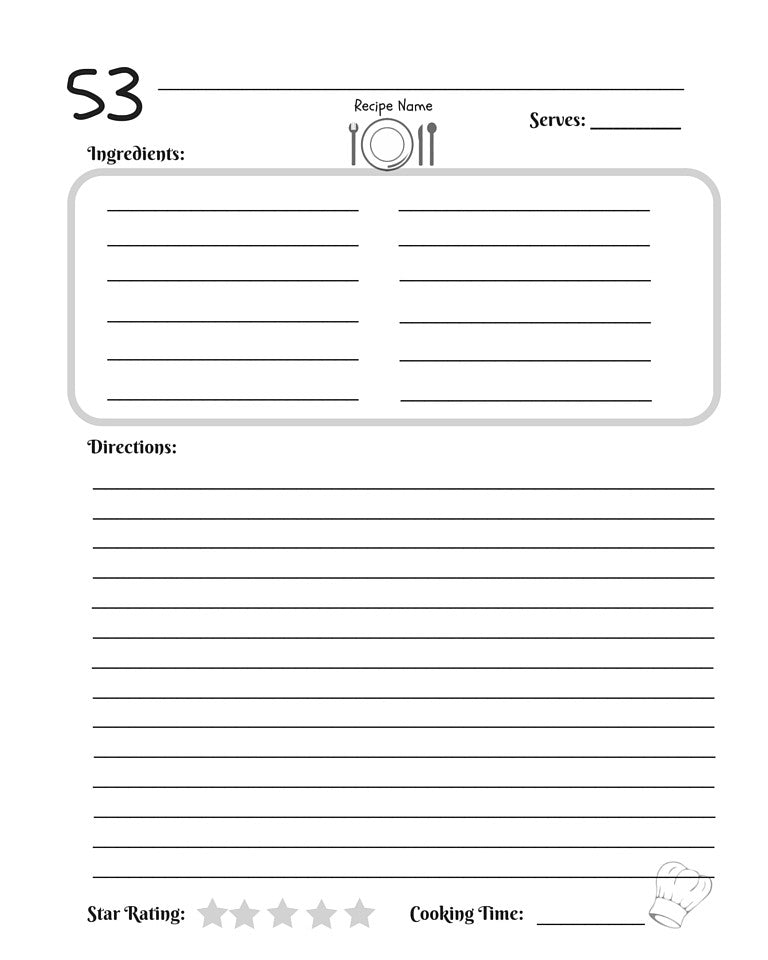 Encourage kids to collect, organize, and create their own cookbook with this fun and interactive recipe binder! Designed especially for young chefs, this printable cookbook allows kids to write down family favorites, experiment with new recipes, and learn essential kitchen skills along the way.
