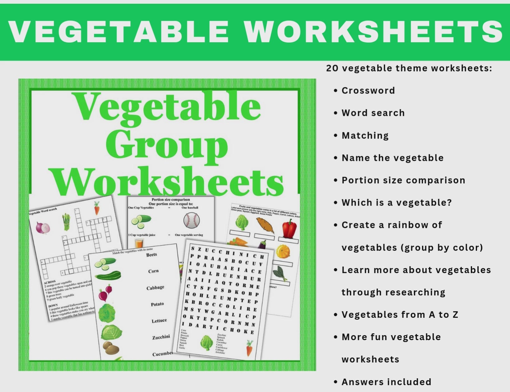 Vegetable Food Group Learning Worksheets-Vegetable Theme Printables-Digital Download